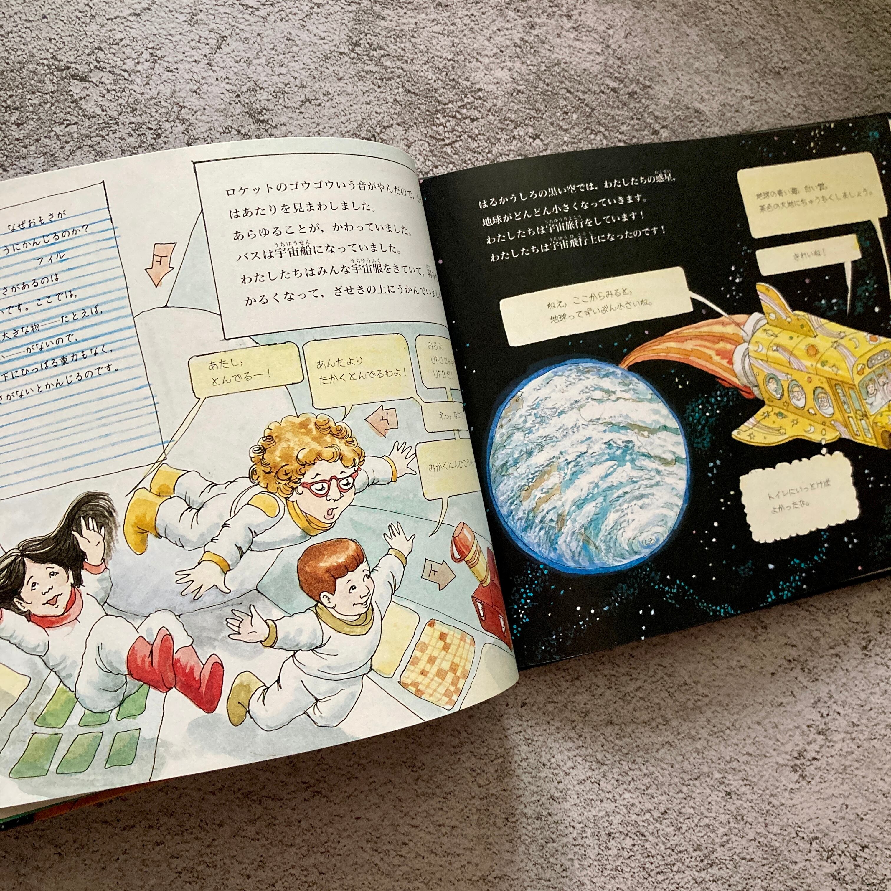 プラネタリウムへクラス遠足.フリズル先生の運転するスクールバスで,さあ出発です.ところがバスは突然ロケットを噴射し,あっというまに宇宙空間へ! 本物の惑星をめぐる遠足になったのですが…….